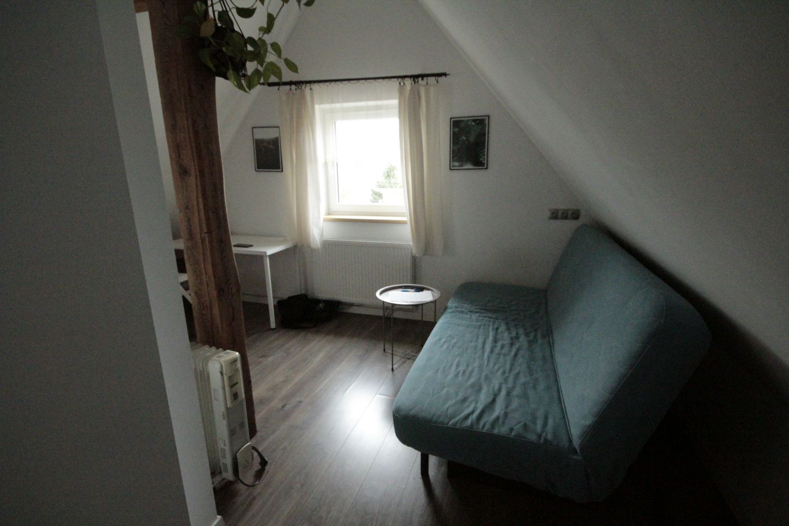 Ulokowane jest na poddaszu domu wielorodzinnego, ogrzewane piecem gazowym.