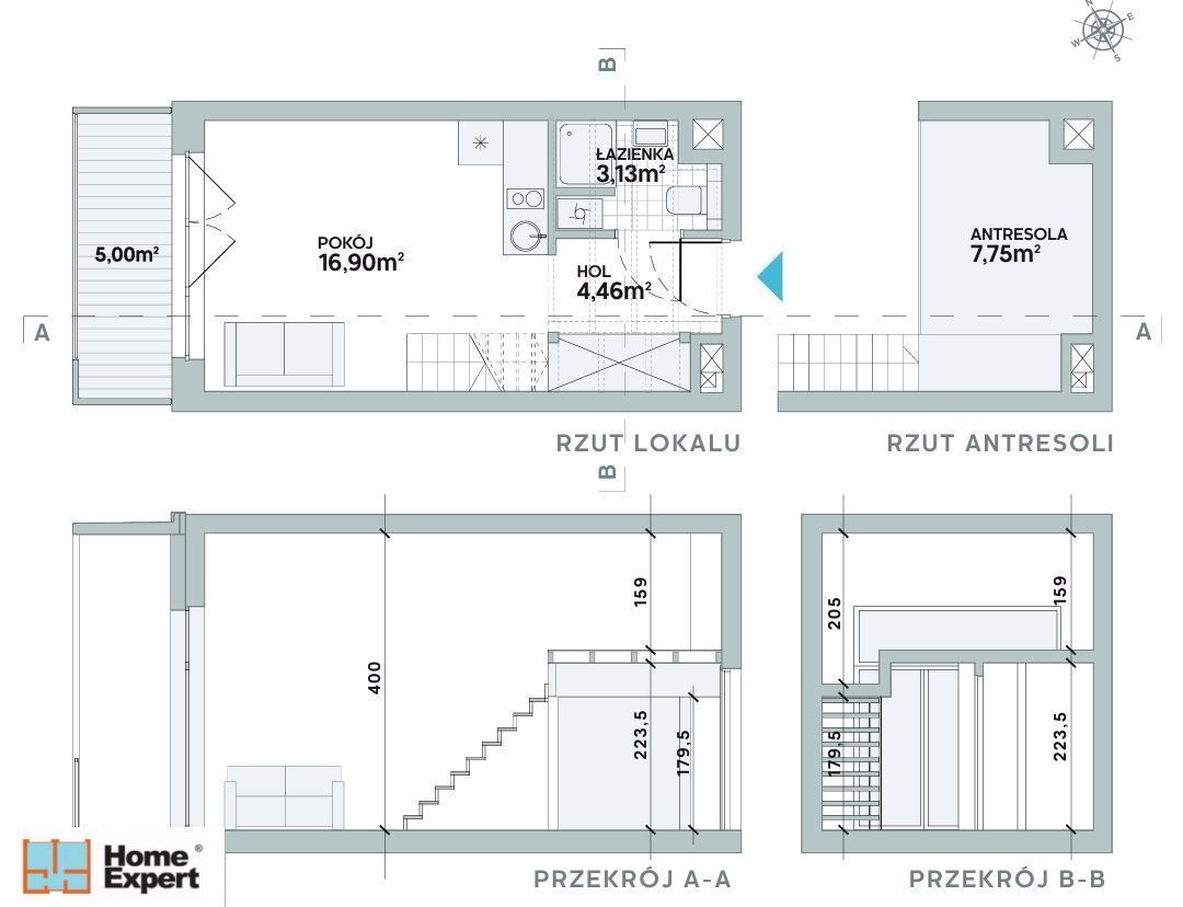 Lokal o powierzchni 32 m² (z antresolą) wyróżnia się wysokością 4 metrów,