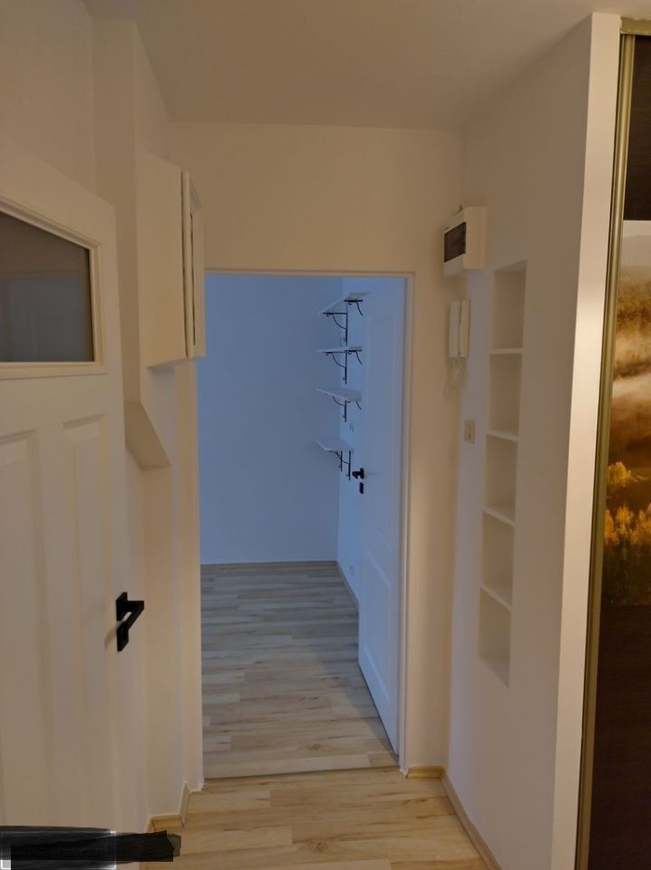 Dodatkowo do użytku dostępna jest część wspólna z mieszkaniem obok, zamykana na klucz (nadająca się na przechowywanie wózków czy rowerów).