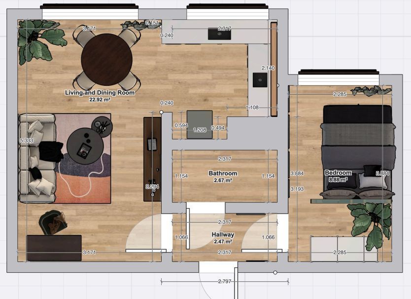 Powierzchnia: 36,1 m² Układ: - Pokój dzienny z aneksem kuchennym - Sypialnia z wygodnym łóżkiem i pojemną szafą - Łazienka z prysznicem - Przytulny balkon/loggia Dodatki: Piwnica/komórka lokatorska o powierzchni 1,4 m² Wyposażenie: