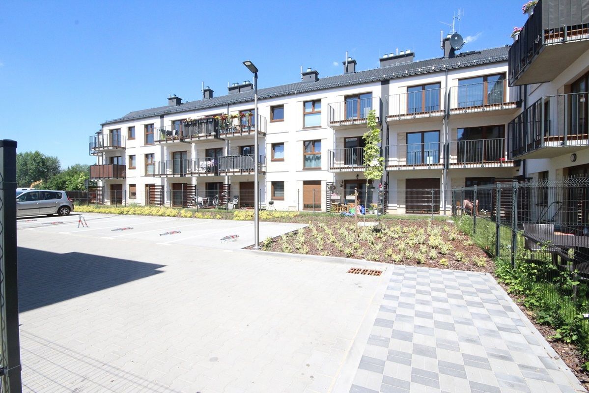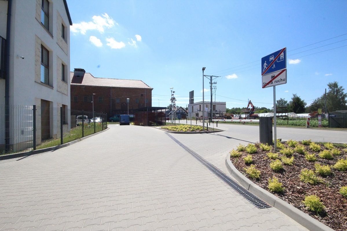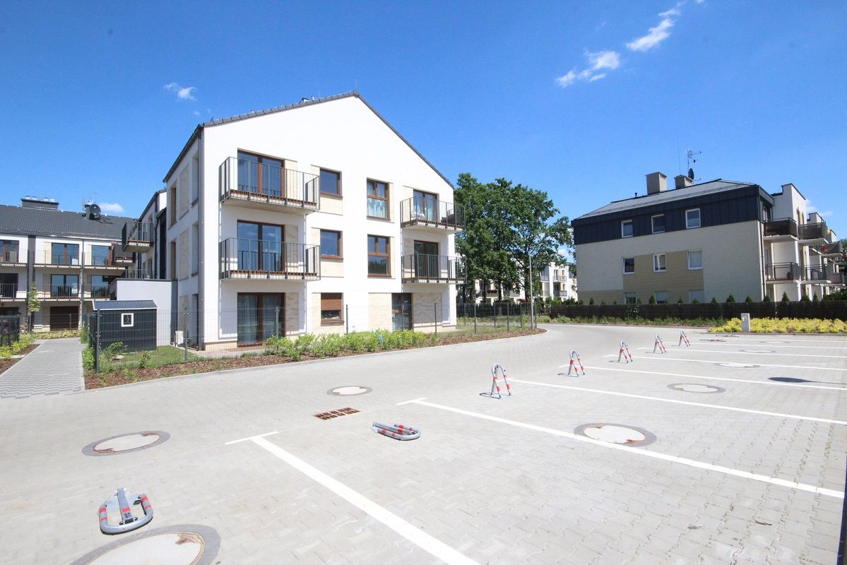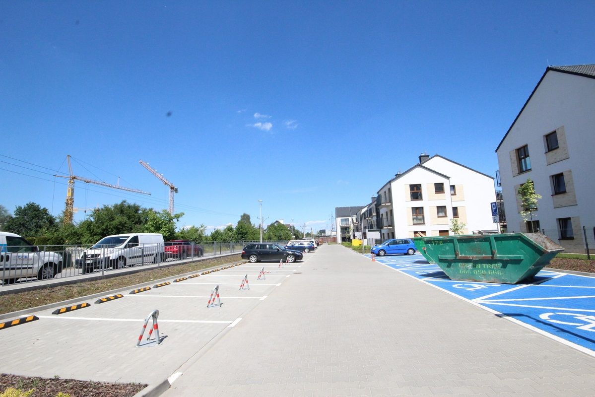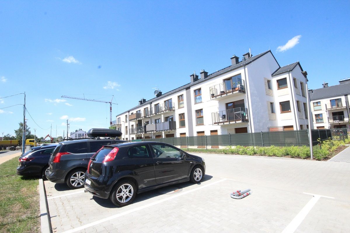 Na zamkniętym osiedlu ze szlabanem znajduje się dużo miejsca parkingowych.