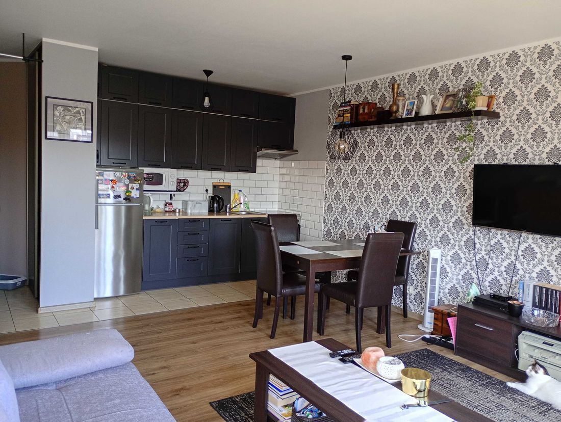Oferuję na sprzedaż przytulne i funkcjonalne mieszkanie o powierzchni 40,03 m², położone na 4. piętrze w 4-piętrowym budynku z dużą windą. Mieszkanie jest odświeżone, umeblowane i gotowe do zamieszkania – idealne dla rodziny, pary lub jako inwestycja pod wynajem. Układ mieszkania: -salon z aneksem kuchennym (28,07 m2) i wyjściem na balkon (5,26 m2), -sypialnia/pokój dziecka (8 m2) z dużą szafą na wymiar, -łazienka z WC (3,94 m2), -przedpokój z pojemną szafą na wymiar. Do mieszkania przynależy komórka lokatorska (piwnica). Dodatkowo możliwość zakupu miejsca postojowego w garażu podziemnym (za dopłatą). W budynku do dyspozycji mieszkańców: wózkownia, rowerownia i suszarnia. Atuty mieszkania: -sprzedawane z umeblowaniem, gotowe do zamieszkania, -dwie szafy na wymiar (przedpokój + sypialnia), -okna od strony wschodniej – jasne wnętrza od rana, -balkon z widokiem na duży, zamknięty plac zabaw, -komórka lokatorska + możliwość miejsca w garażu podziemnym, -budynek pod zarządem SM Osada, zadbane części wspólne, -dostęp do dodatkowych udogodnień: wózkownia, rowerownia, suszarnia. Lokalizacja: Mieszkanie znajduje się na Lipie Piotrowskiej, jednym z najszybciej rozwijających się osiedli Wrocławia. W okolicy: -przychodnie zdrowia i apteki – kilkaset metrów, -sklepy – kilka Żabek, warzywniak, piekarnia, -usługi – kilku fryzjerów, cukiernie, punkty gastronomiczne, -biblioteka publiczna, -przystanek autobusowy Waniliowa – tuż przy budynku (linie 105, 108, 111, 143 oraz nocny 244), - niedaleko stacja kolejowa- dojazd do dworca głównego w ok. 15 minut, -nowoczesna szkoła podstawowa – ok. 3 minuty pieszo, -liczne przedszkola i żłobki w odległości kilkuset metrów, -rekreacja – boiska do koszykówki, piłki nożnej i tenisa, - wokół liczne tereny zielone oraz planowana budowa parku, -plac zabaw – bardzo duży, zamknięty, widoczny z okien mieszkania, -w planach budowa aquaparku przy szkole podstawowej. Podsumowanie: Powierzchnia: 40,03 m² Piętro: 4/4 (budynek z dużą windą) Układ: salon z aneksem + sypialnia + łazienka + przedpokój + balkon Stan: odświeżone, umeblowane, gotowe do zamieszkania Ekspozycja: wschodnia Dodatki: komórka lokatorska, możliwość zakupu miejsca w garażu podziemnym Udogodnienia: wózkownia, rowerownia, suszarnia Zarząd: SM Osada