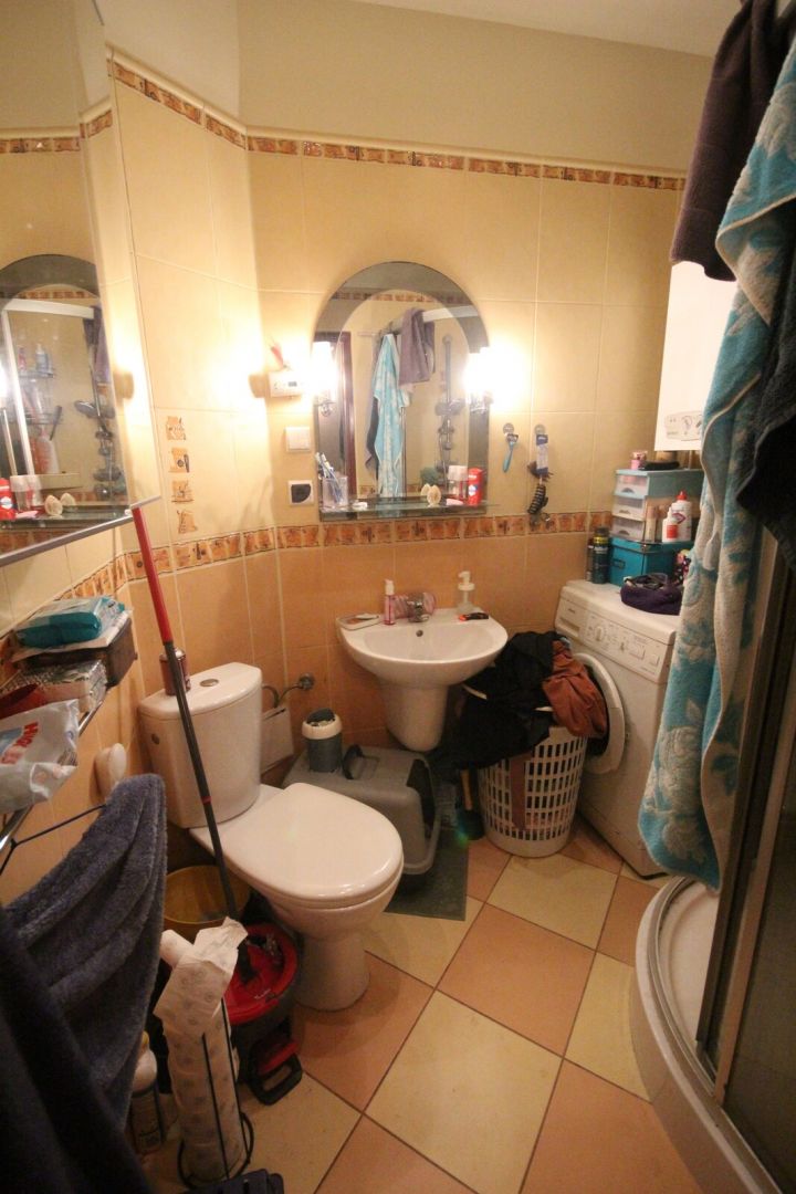 Jest w pełni umeblowane i wyposażone w sprzęt AGD, w tym pralkę, lodówkę i kuchenkę.