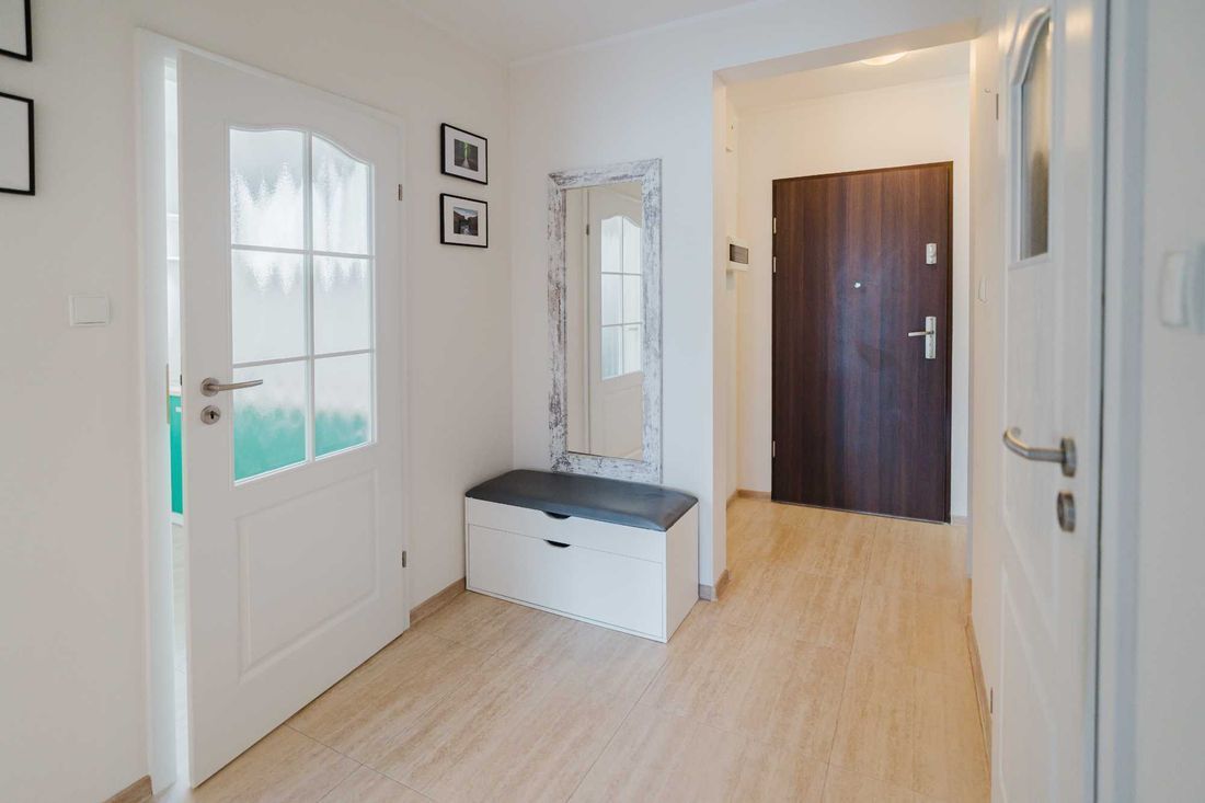 Mieszkanie z garażem podziemnym. Jasne i przestronne mieszkanie o powierzchni 49.2 m². Położone na 2 piętrze budynku wielorodzinnego 3 piętrowego na wrocławskim Zakrzowie, wybudowanym w 2012 roku. Układ i wyposażenie: przytulny salon – w pełni umeblowany z wyjściem na balkon, klimatyzacja kuchnia - oddzielna, wyposażona w sprzęt AGD (mikrofalówka, zmywarka, lodówka, płyta indukcyjna) osobna sypialnia z dużym łóżkiem i szafą w zabudowie, praktyczna garderoba, która ułatwia utrzymanie porządku, łazienka z wanną i WC, w oknach rolety, które zapewniają prywatność. Atuty mieszkania: - jasne wnętrza, ekspozycja wschodnia, - przestronny balkon na popołudniowy relaks z zabudowaną wnęką która służy do przechowywania, - miejsce postojowe w garażu podziemnym (dodatkowo płatne 50 000 zł) na osobnej księdze - liczne miejsca parkingowe przy budynku (wjazd przez szlaban). - budynek posiada jedną windę w środkowej klatce połączoną z garażem podziemnym i wyjściem na zewnątrz. Dogodne przejście między klatkami umożliwia dostęp do windy. - telewizja i Internet - czynsz ok. 650 PLN/miesiąc Lokalizacja – Zakrzów: To dynamicznie rozwijająca się część Wrocławia, w której znajdziesz wszystko, co potrzebne na co dzień: sklepy, szkoły, żłobki, przedszkola, punkty usługowe i tereny rekreacyjne. W najbliższej okolicy: nowoczesny Aquapark i Park Jedności, trasy rowerowe, las Zakrzowski i rzeka Dobra – idealne na aktywny wypoczynek, szybki dojazd do centrum dzięki komunikacji miejskiej - autobusy 141, 130, D (550m), kolei (Wrocław Psie Pole 2.5km, Wroclaw Zakrzów 1.5km) i obwodnicy Wrocławia. W pobliżu centrum Handlowe Korona (5.4km) ora popularne dyskonty (1km).