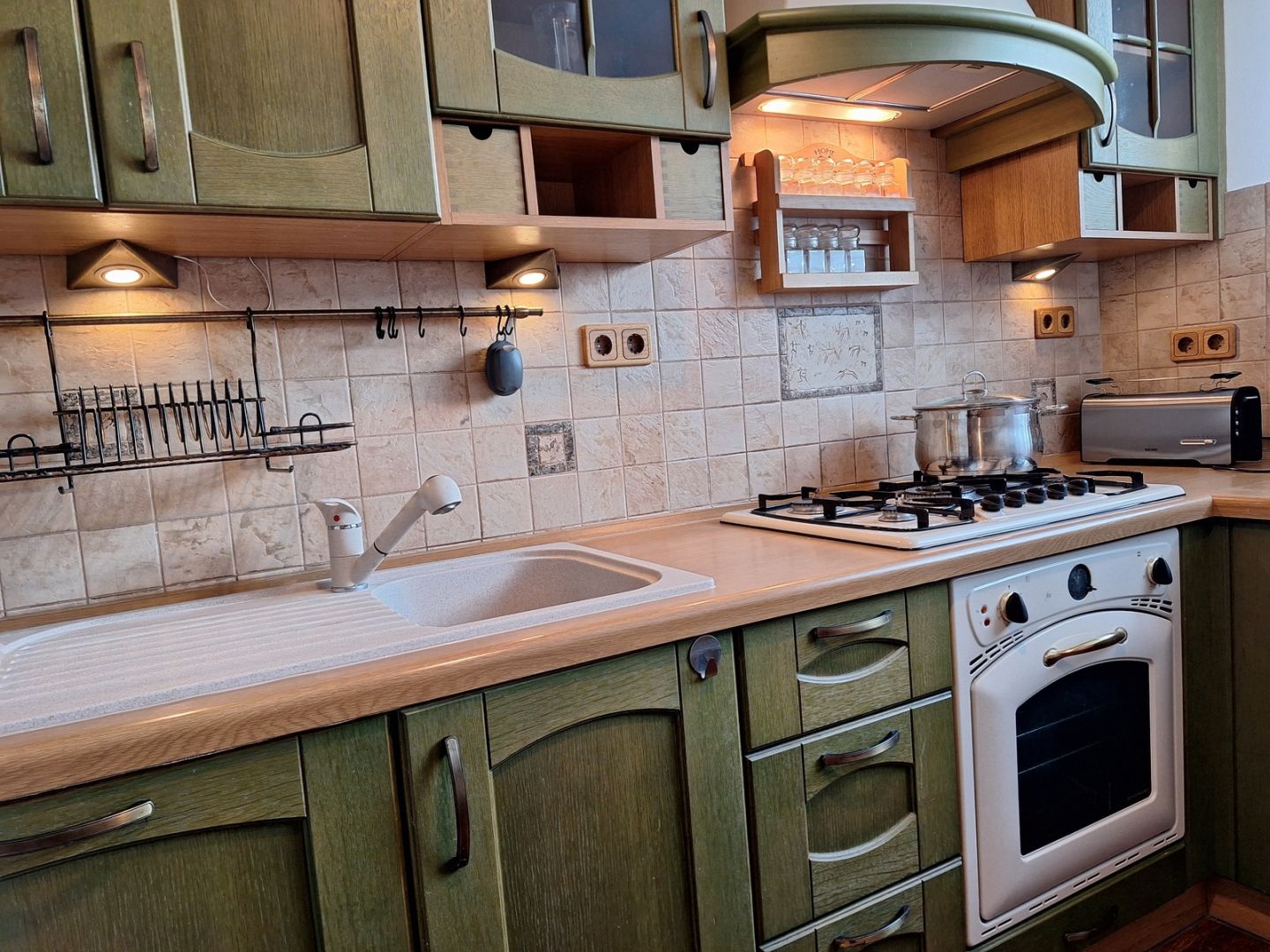 kuchnia szafki– drewno dębowe, podłoga w kuchni – drewno kokosowe