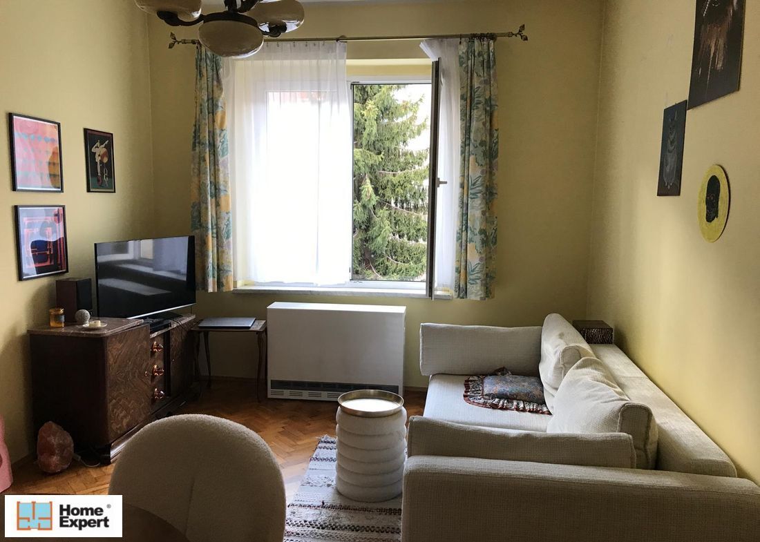 Duży salon (ok. 20 m²) z pięknym widokiem na zieleń i ogródki – idealne miejsce do relaksu po pracy,