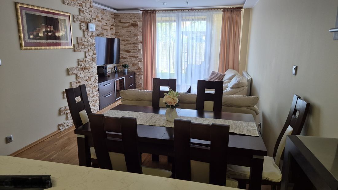 Do sprzedania mieszkanie 3-pokojowe, 60 m², ogródek około 40 m², druga część działki do zagospodarowania 30 m² (np. warzywniak czy mały plac zabaw dla dzieci). Parter, niska zabudowa, os. Różanka. Osiedle małe, kameralne, od dewelopera, zaledwie 36 mieszkań, zamieszkałe od 2015 roku. Ogrodzone, brama wjazdowa na pilota, monitoring, alarm. Kolejna brama do garażu też na pilota. Okolica niskiej zabudowy, maks. 1 piętro, domki jednorodzinne, widok na zieleń. Żaden blok nagle nie wyrośnie przed oknami. Rewelacyjna lokalizacja! Mieszkanie kompletnie wyposażone, do zamieszkania. Można zamontować klimatyzację oraz fotowoltaikę, jest sporo miejsca. Ogrzewanie gazem miejskim (centralne), internet światłowód Moico czy IT4 Tech. Na dachu Multiplex do odbioru TV SAT, wystarczy podłączyć dekoder w mieszkaniu. Czynsz, zależnie od zużycia wody i ogrzewania oraz od posiadanych garaży, wynosi 950 zł - 1 150 zł. Cicha okolica, tuż obok park, właśnie rewitalizowany, z ławkami, nowymi ścieżkami i oświetleniem. W pobliżu sklepy, apteki, Żabki, stacja paliw, przychodnie, obiady domowe, mechanicy samochodowi, Lidl, Aldi, Biedronka. Świetne trasy rowerowe w okolicy, lasek Osobowicki. Bardzo dobra komunikacja miejska: tuż obok dwa przystanki autobusowe, kawałek dalej tramwajowe we wszystkich kierunkach miasta. Dokładnie 3,5 km od wrocławskiego Rynku, zaledwie 6 przystanków autobusowych. Kolejna nieruchomość to garaż w cenie 90 tys. zł, 75 m², na dwa auta i inne rzeczy: rowery, motocykl, szafki, koła. Zimą garaż ciepły, latem w upały temp. około 20. Może być sprzedane jedno miejsce parkingowe w cenie 50 tys. zł. W garażu można pociągnąć własny prąd i zamontować bramę garażową na pilota zamykaną. Mieszkanie z ogródkiem x 2 - cena 845 tys. zł + garaż 75 m² - 90 tys. zł. Razem 935 000 zł. Mieszkanie może być również sprzedane bez garażu. Cała nieruchomość około 200 m²