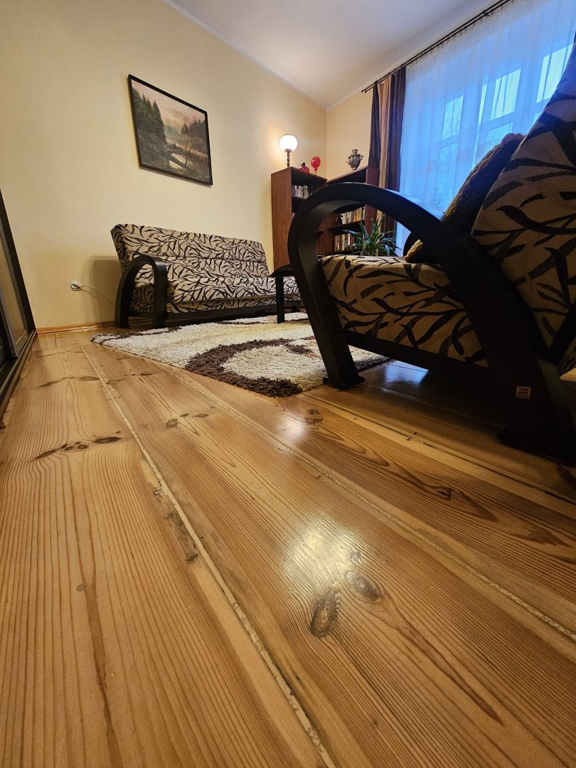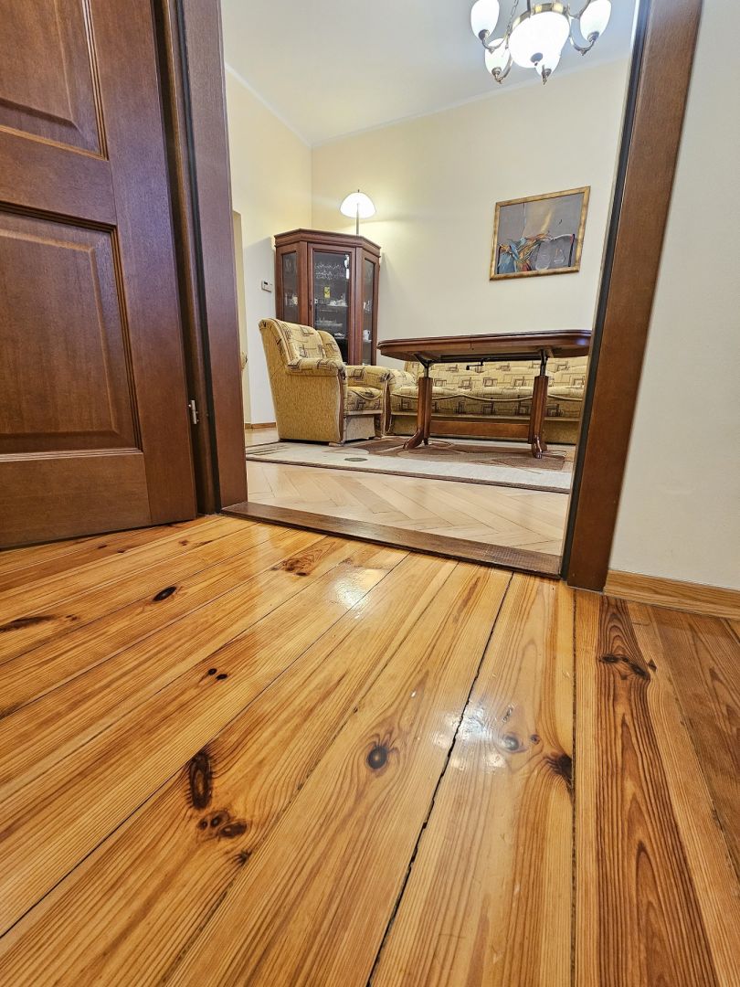 parkiety i deski (sosna / dąb) – naturalne, jasne, zdrowe, po cyklinowaniu (cyklinowanie ok. 9 000 zł)