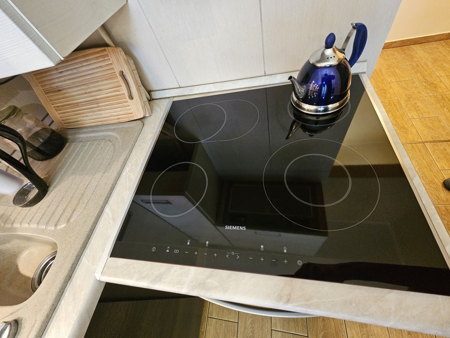 w pełni wyposażona kuchnia z jadalnią i schowkiem