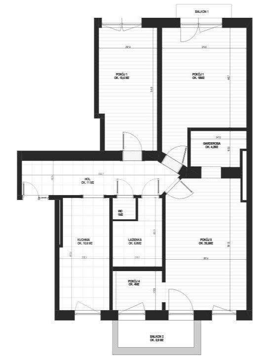 3 dużych pokoi oraz sypialni i garderoby (wydzielonych przy jednym z nich),