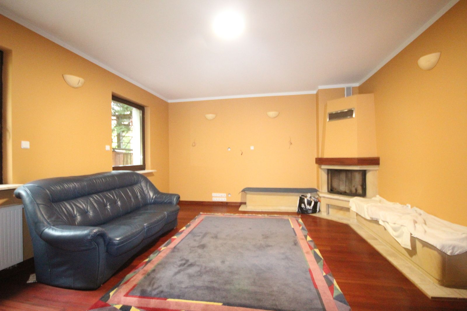 Dom posiada kominek i drugie ogrzewanie drewnem.