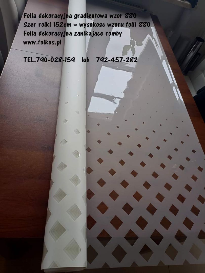 Folia gradientowa PERŁA 152- gotowy wzor folii na dole pełny mat - stopniowo zanikajacy ku gorze - szer rolki 152cm
