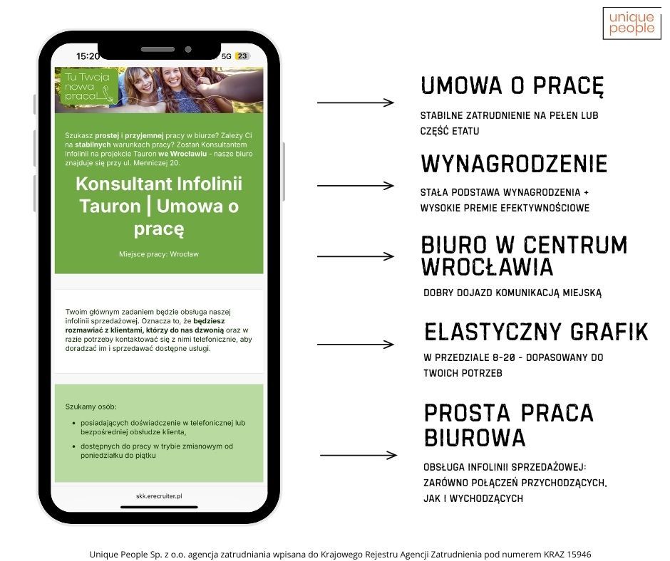Szukasz prostej i przyjemnej pracy w biurze? Zależy Ci na stabilnych warunkach i atrakcyjnym wynagrodzeniu? Zostań Konsultantem Infolinii na projekcie Tauron we Wrocławiu. Nasze biuro znajduje się przy ul. Menniczej 20.