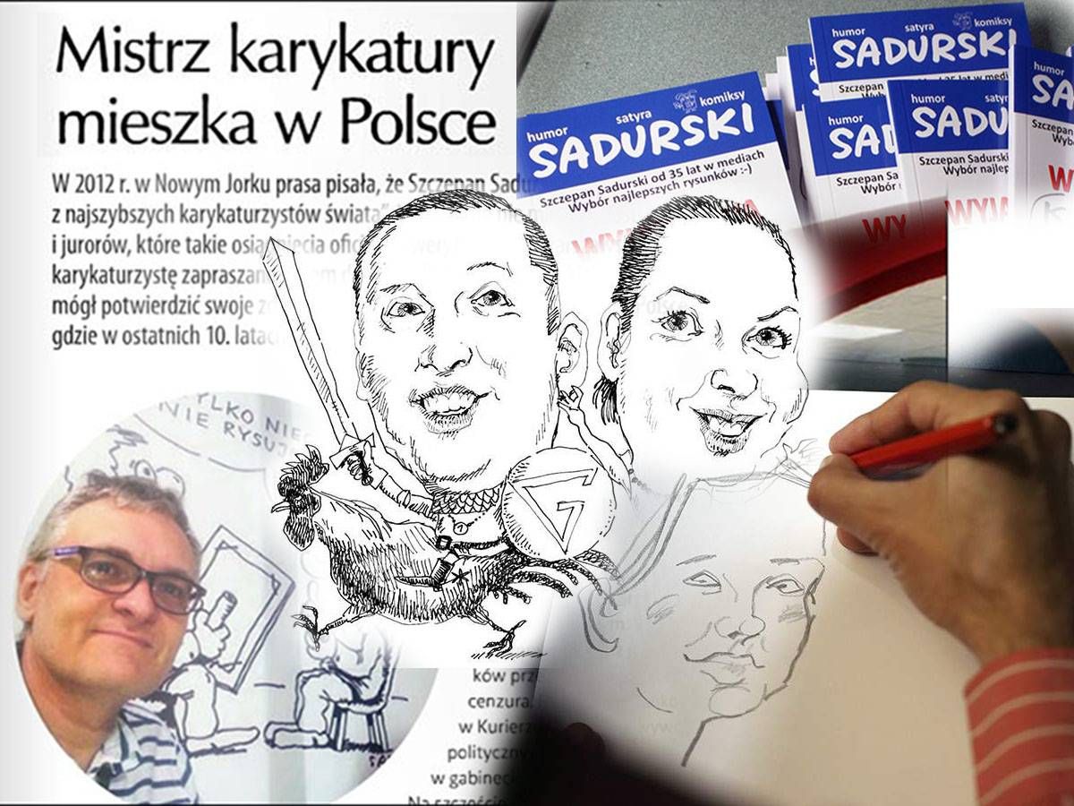 Rysunki Szczepana Sadurskiego Polacy znają nie tylko z prasy, programów TV i gazetki Dobry Humor. Obecnie to słynny karykaturzysta eventowy. Rysował w Nowym Jorku, Australii, Europie, ale najwięcej pracy ma w Polsce.