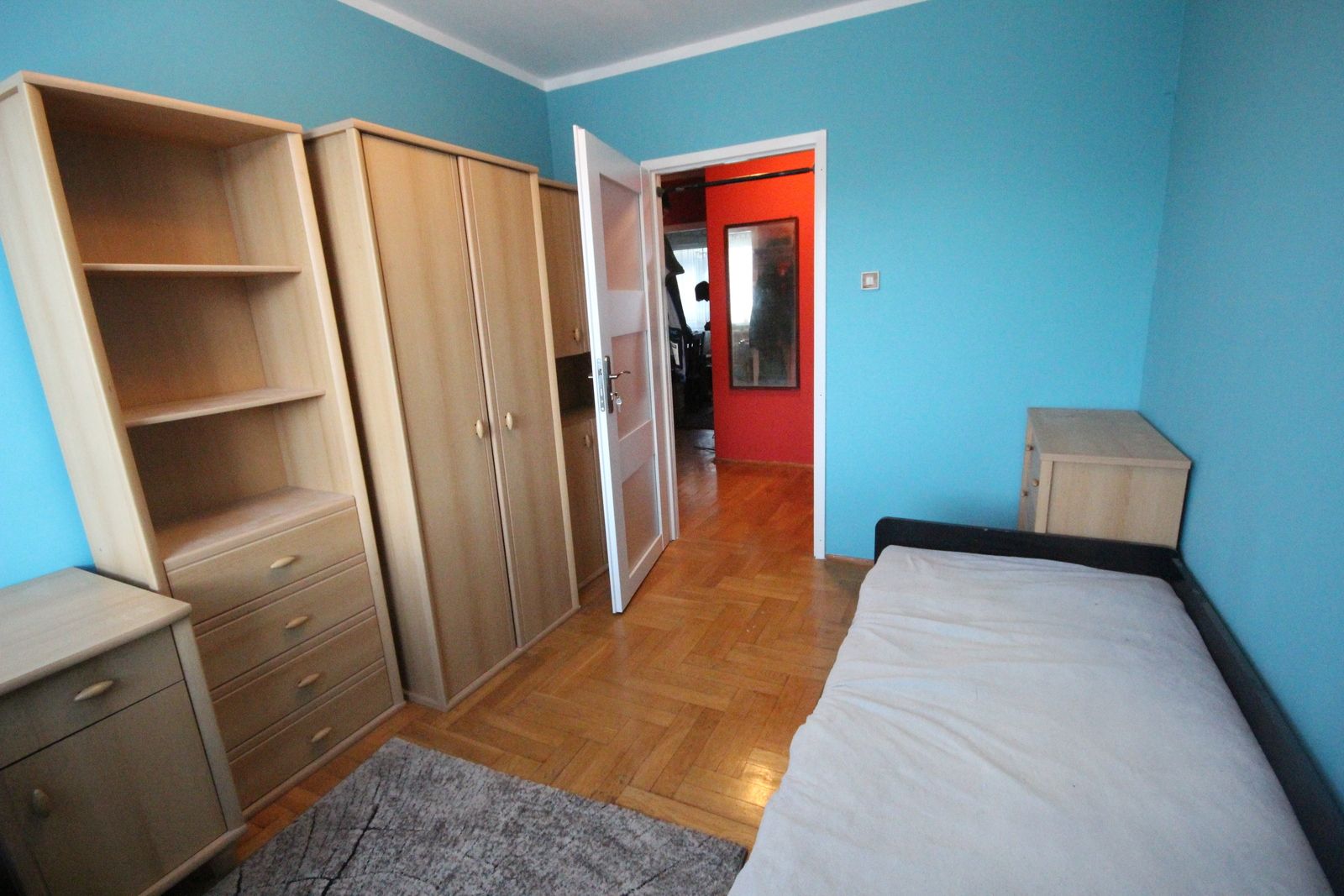 W mieszkaniu osobne wejścia do pokoju z przedpokoju.